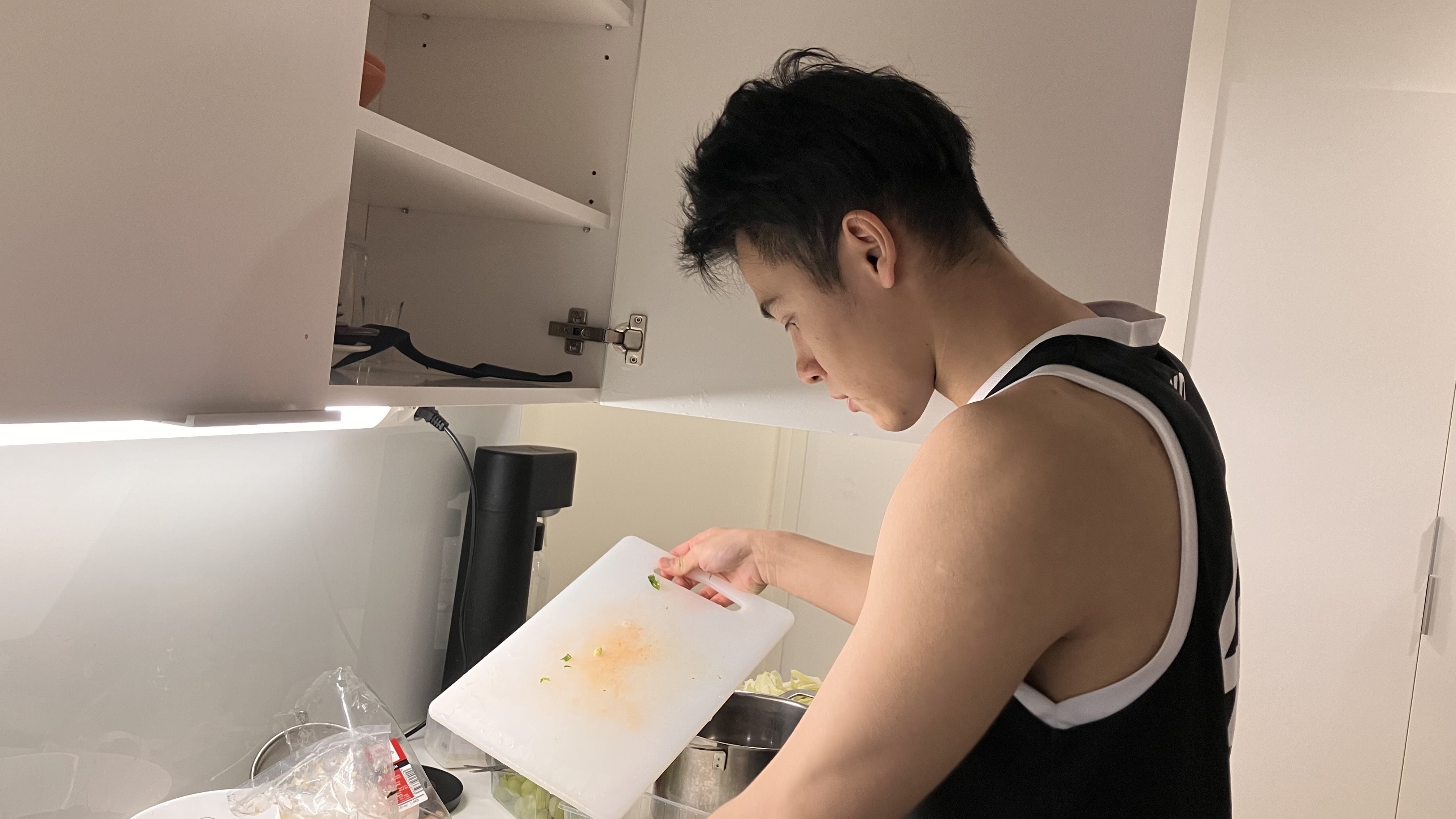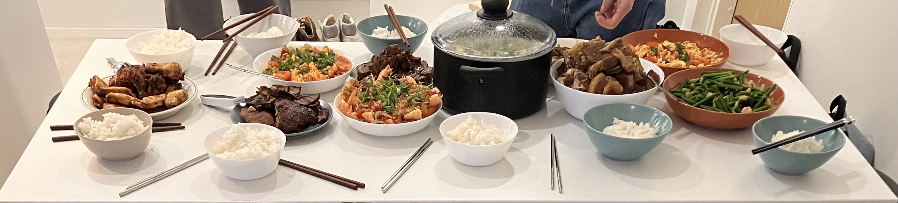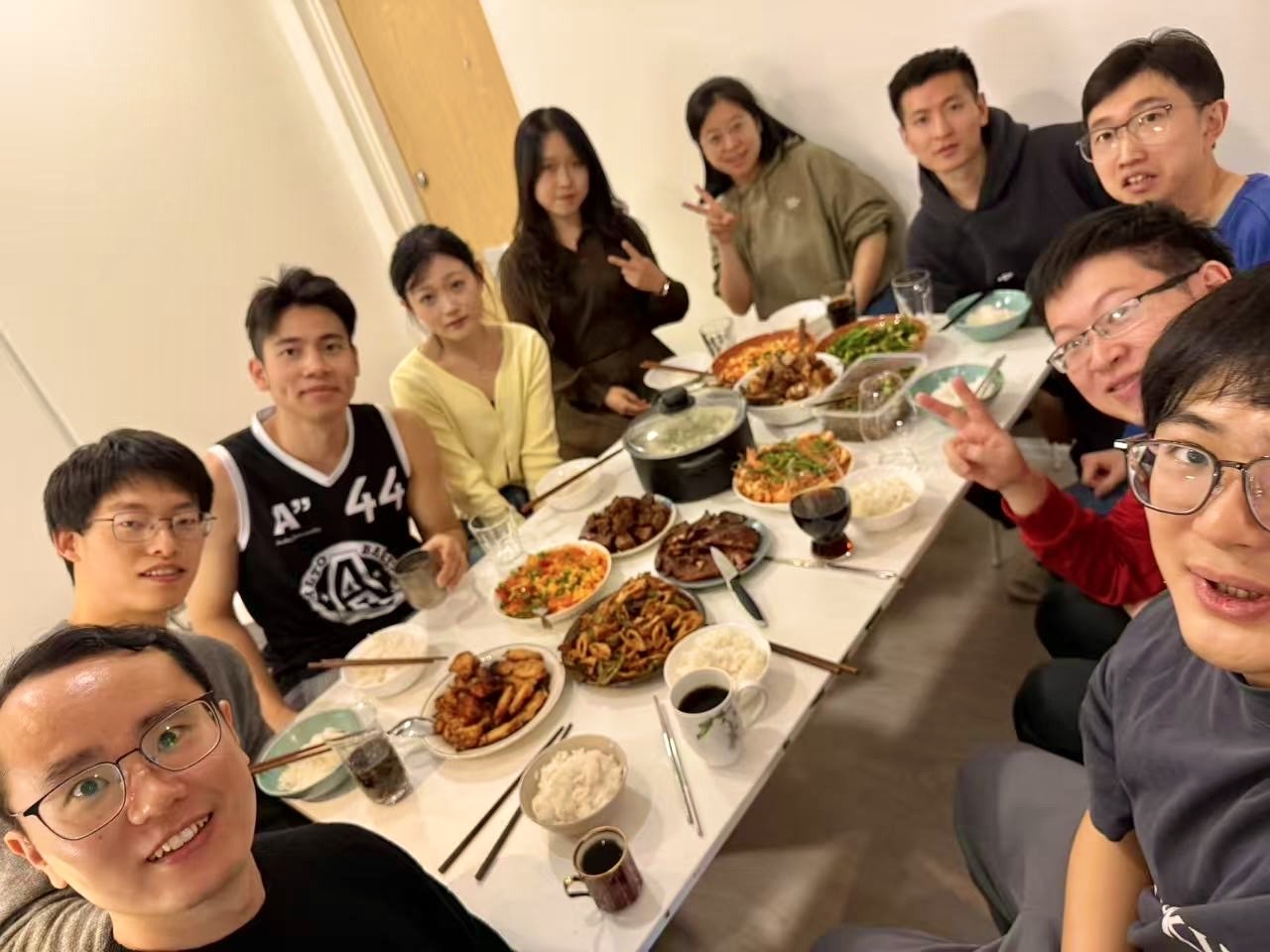 2025.12.07 Invited by [Haoxuan], I went to his appartment having [great lunch]. I knew some friends: Xiaodan Hong, a warm and outgoing girl who loves cooking and JJ Lin; Ziyi Fang, a new PhD. He made braised pork belly with skin; Yuhuang Fang, a PhD. He looks like Yoga Lin; Zhen Lin, who just got his PhD and plans to go back to China; and another host, Xi Lin. The garlic shrimp and salmon soup he made were insanely good. Thanks, guys. This was a wonderful Sunday. [Photo before lunch]